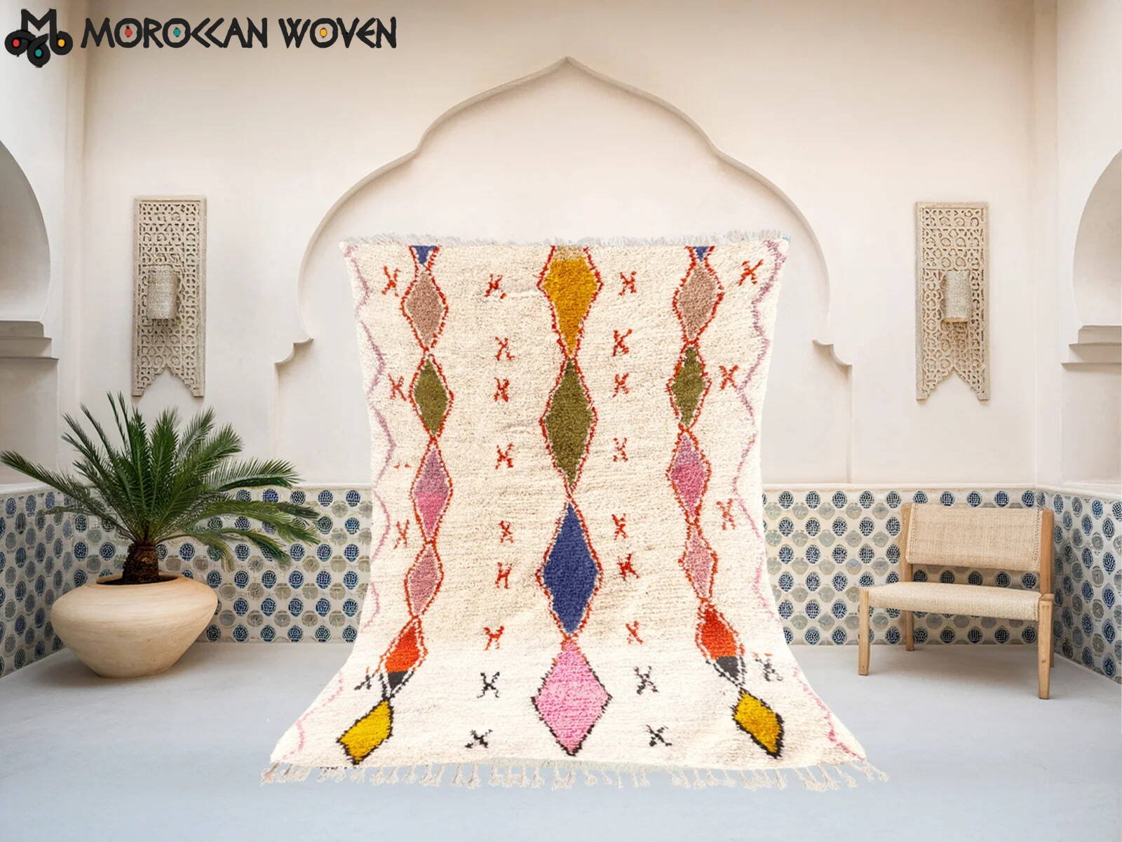 The price of a rug in Morocco depends on several factors, including size, material, knot density, and craftsmanship. Small handmade rugs may start around $100, while larger, high-quality handwoven Moroccan rugs can range from several hundred to a few thousand dollars. Custom rugs and finely woven pieces naturally cost more due to the time, skill, and materials involved.