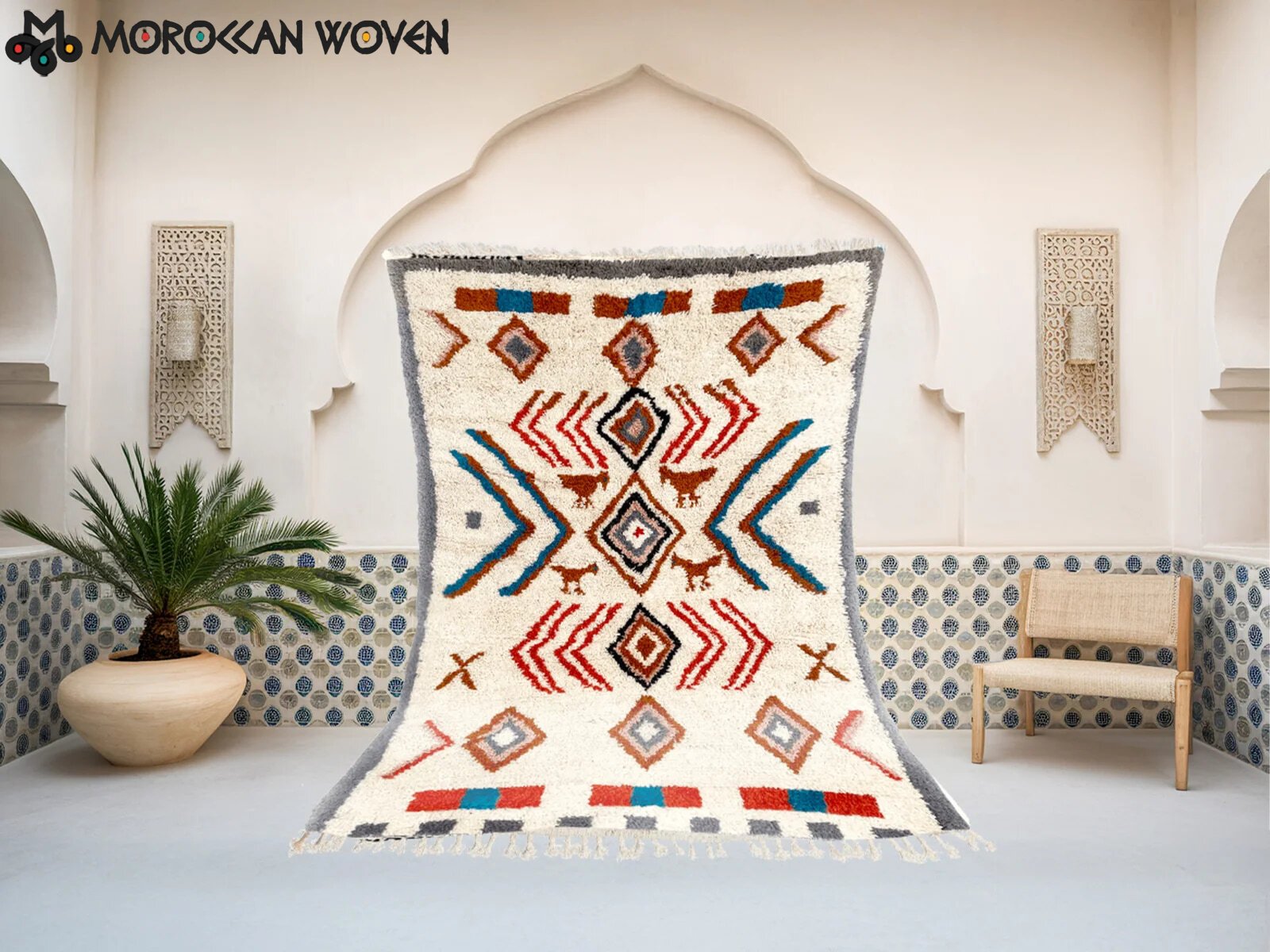A Moroccan rug is generally referred to as a Berber rug, named after the Indigenous Berber (Amazigh) tribes who traditionally weave them. Depending on the region and style, Moroccan rugs are also known by specific names such as Beni Ouarain rugs, Azilal rugs, Mrirt rugs, or Boujaad rugs.