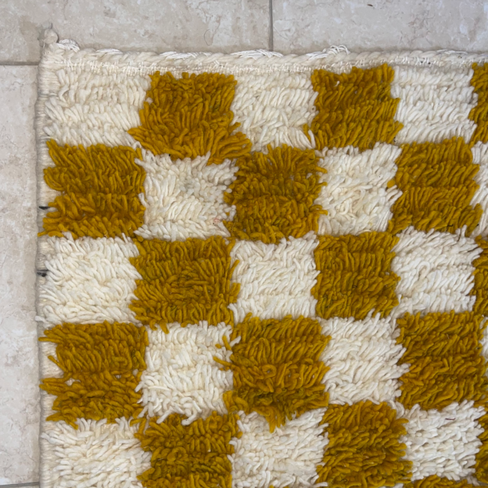 Moroccan Rug, Beni Ourain rug 100% thick and natural wool with fringed finishes on the edges. Exceptional and unique piece handmade by Berber women on wooden looms.