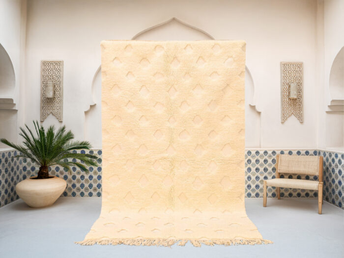 This exquisite Asira – Mrirt Rug is part of our luxurious handwoven collection, crafted with care by Berber artisans from the High Atlas Mountains in Morocco. Known for their exceptional quality, Mrirt rugs are made from the finest, undyed natural wool, offering an unparalleled softness and dense texture that sets them apart from other Moroccan rugs.