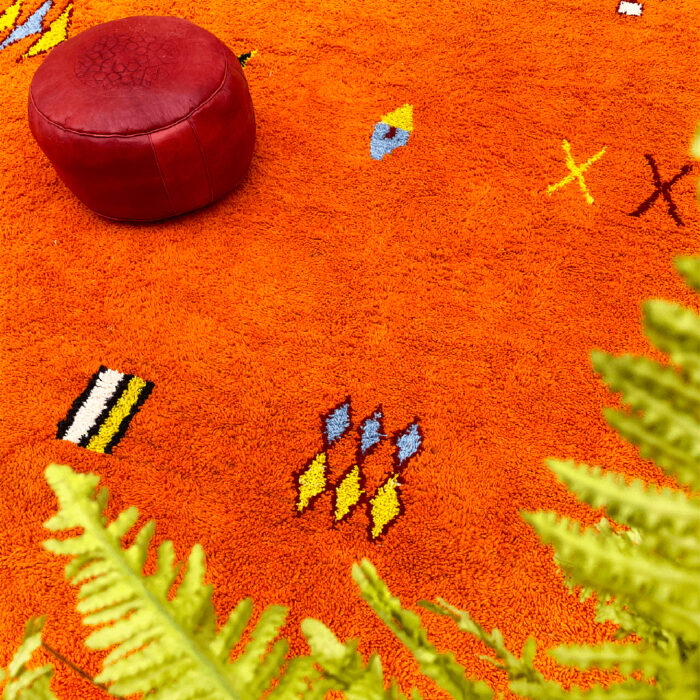 Our luxurious – Awsim  Rug is a standout piece from our handwoven collection, crafted with precision and care by talented Berber artisans from the High Atlas Mountains in Morocco. Renowned for their exceptional craftsmanship, Azilal rugs are made using a blend of natural wool and cotton, offering a distinctive texture and vibrant color combinations that elevate any interior design.
