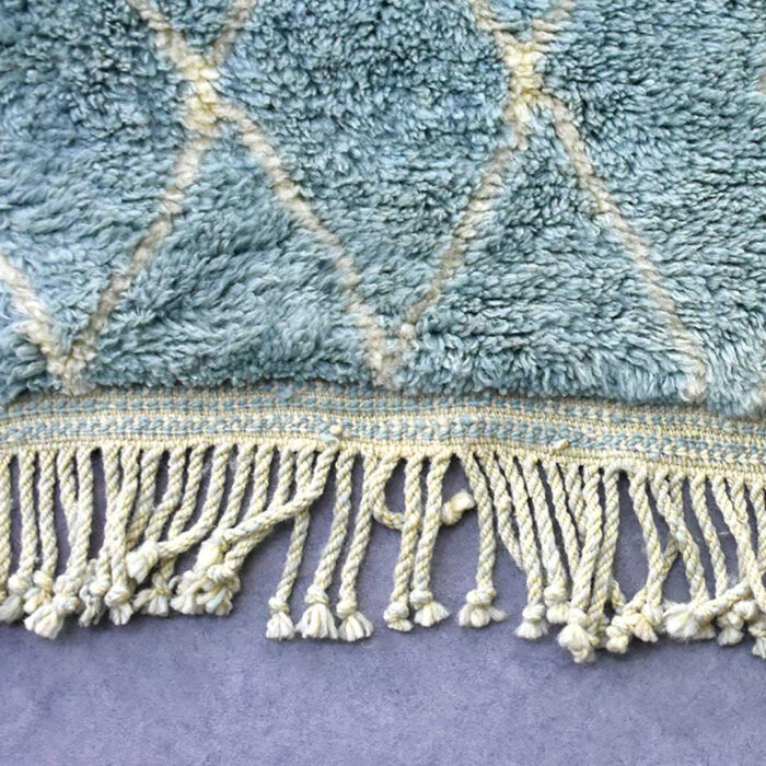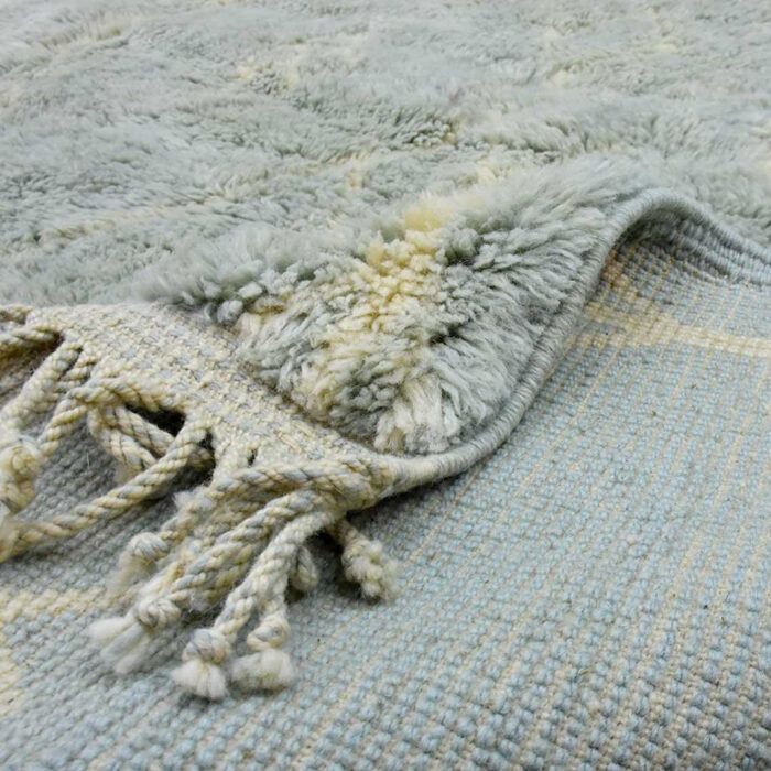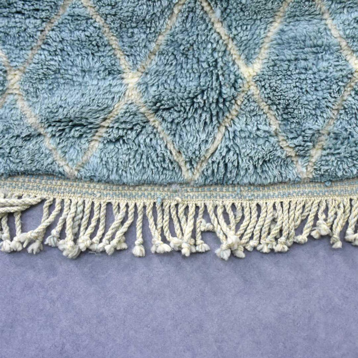Moroccan Rug, Beni Ourain rug 100% thick and natural wool with fringed finishes on the edges. Exceptional and unique piece handmade by Berber women on wooden looms.
