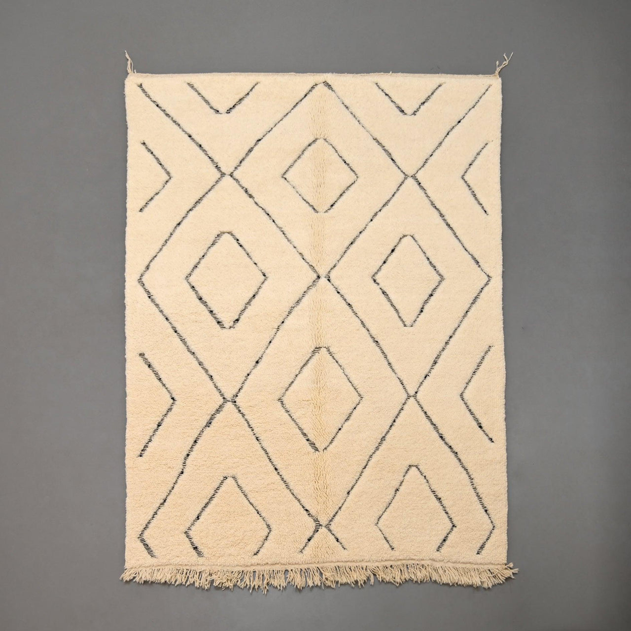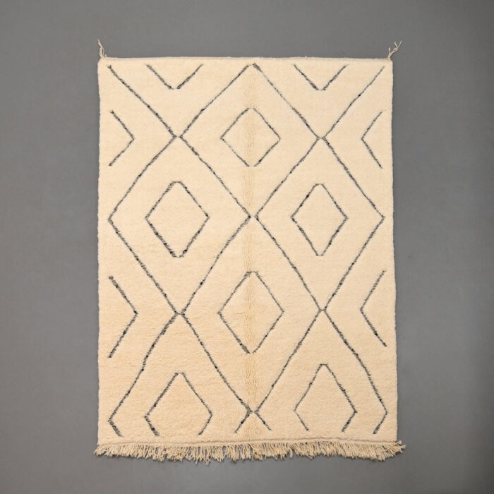 This exquisite Inas – Mrirt Rug is part of our luxurious handwoven collection, crafted with care by Berber artisans from the High Atlas Mountains in Morocco. Known for their exceptional quality, Mrirt rugs are made from the finest, undyed natural wool, offering an unparalleled softness and dense texture that sets them apart from other Moroccan rugs.