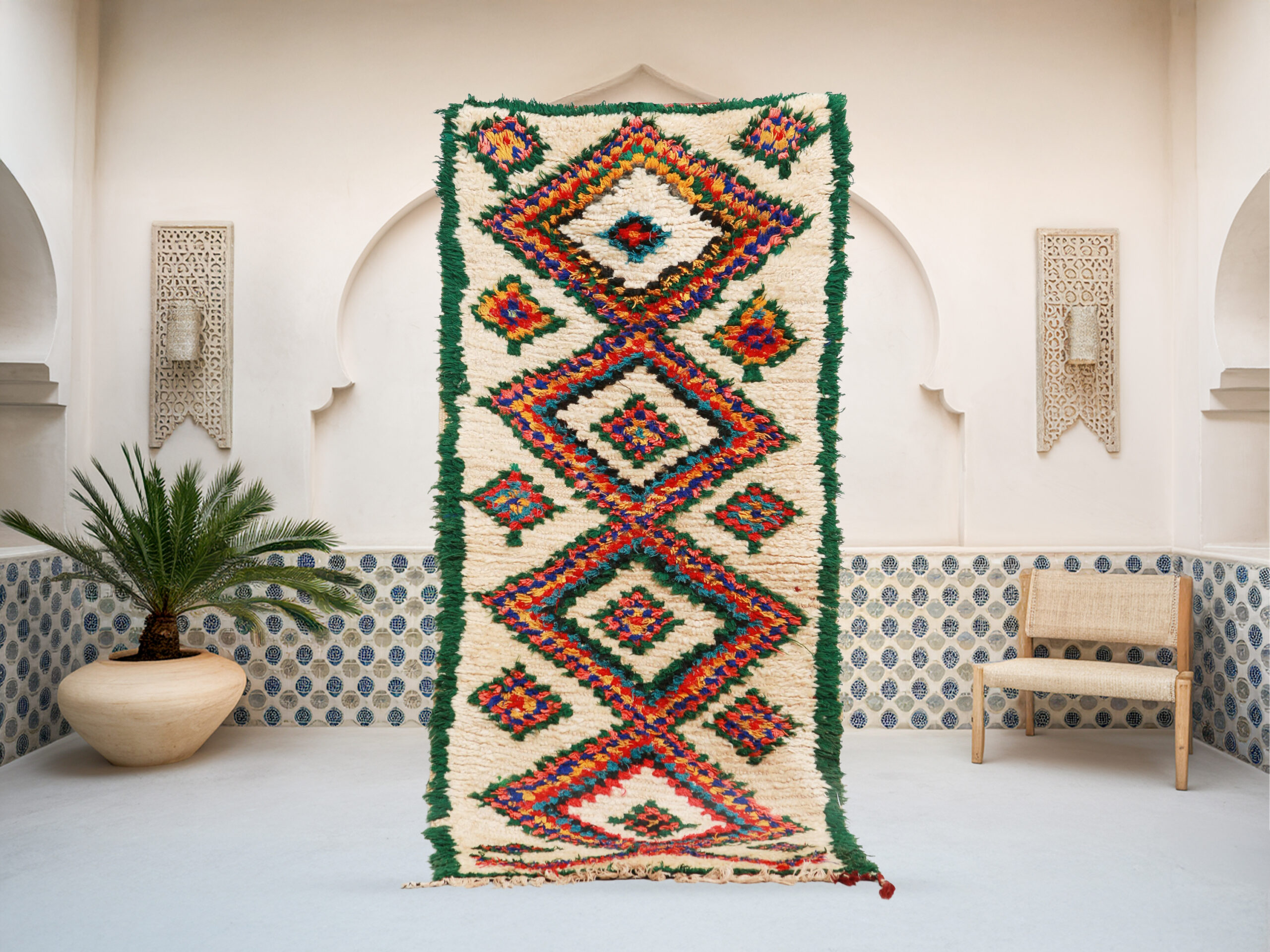 Our luxurious Taziri– Azilal Rug is a standout piece from our handwoven collection, crafted with precision and care by talented Berber artisans from the High Atlas Mountains in Morocco. Renowned for their exceptional craftsmanship, Azilal rugs are made using a blend of natural wool and cotton, offering a distinctive texture and vibrant color combinations that elevate any interior design.