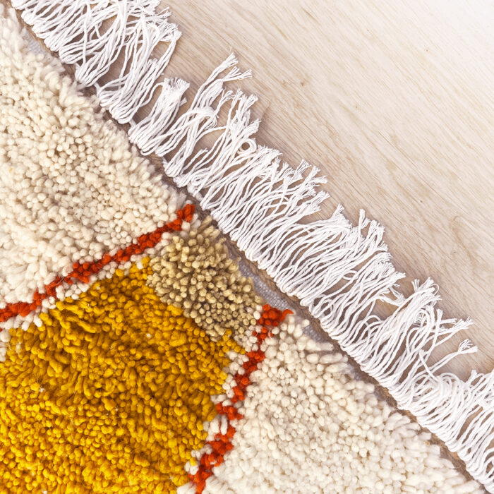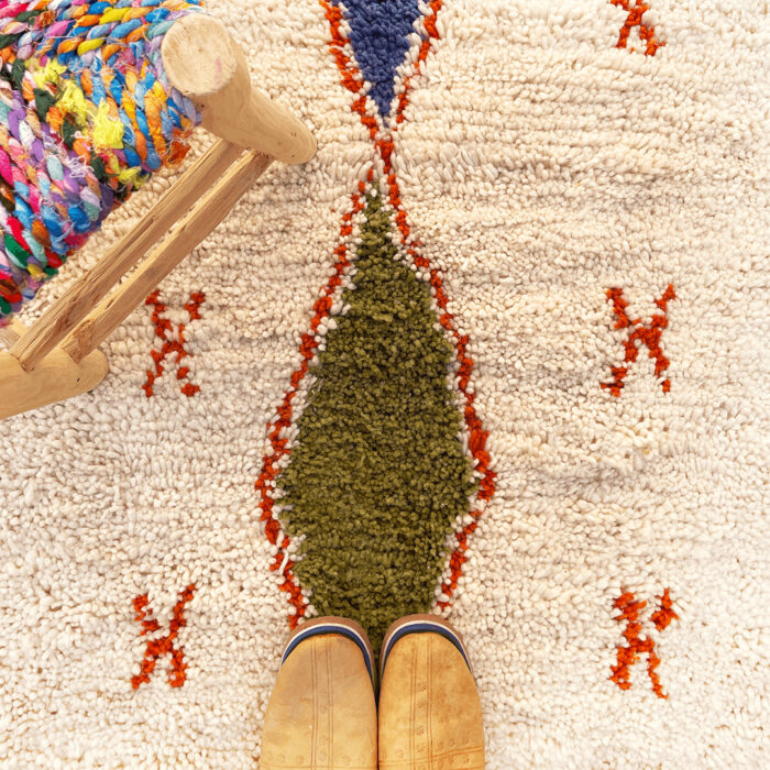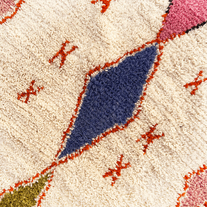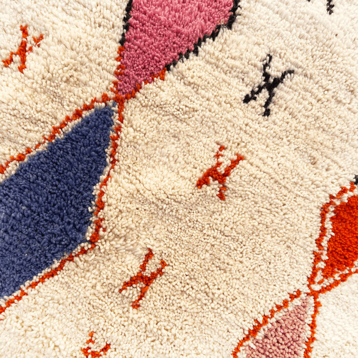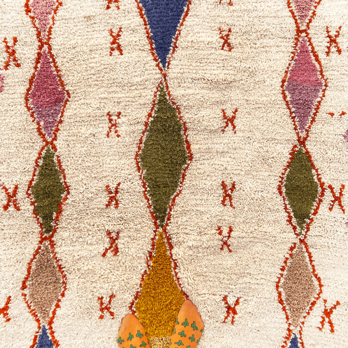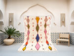 Our luxurious – Randia Rug is a standout piece from our handwoven collection, crafted with precision and care by talented Berber artisans from the High Atlas Mountains in Morocco. Renowned for their exceptional craftsmanship, Azilal rugs are made using a blend of natural wool and cotton, offering a distinctive texture and vibrant color combinations that elevate any interior design.