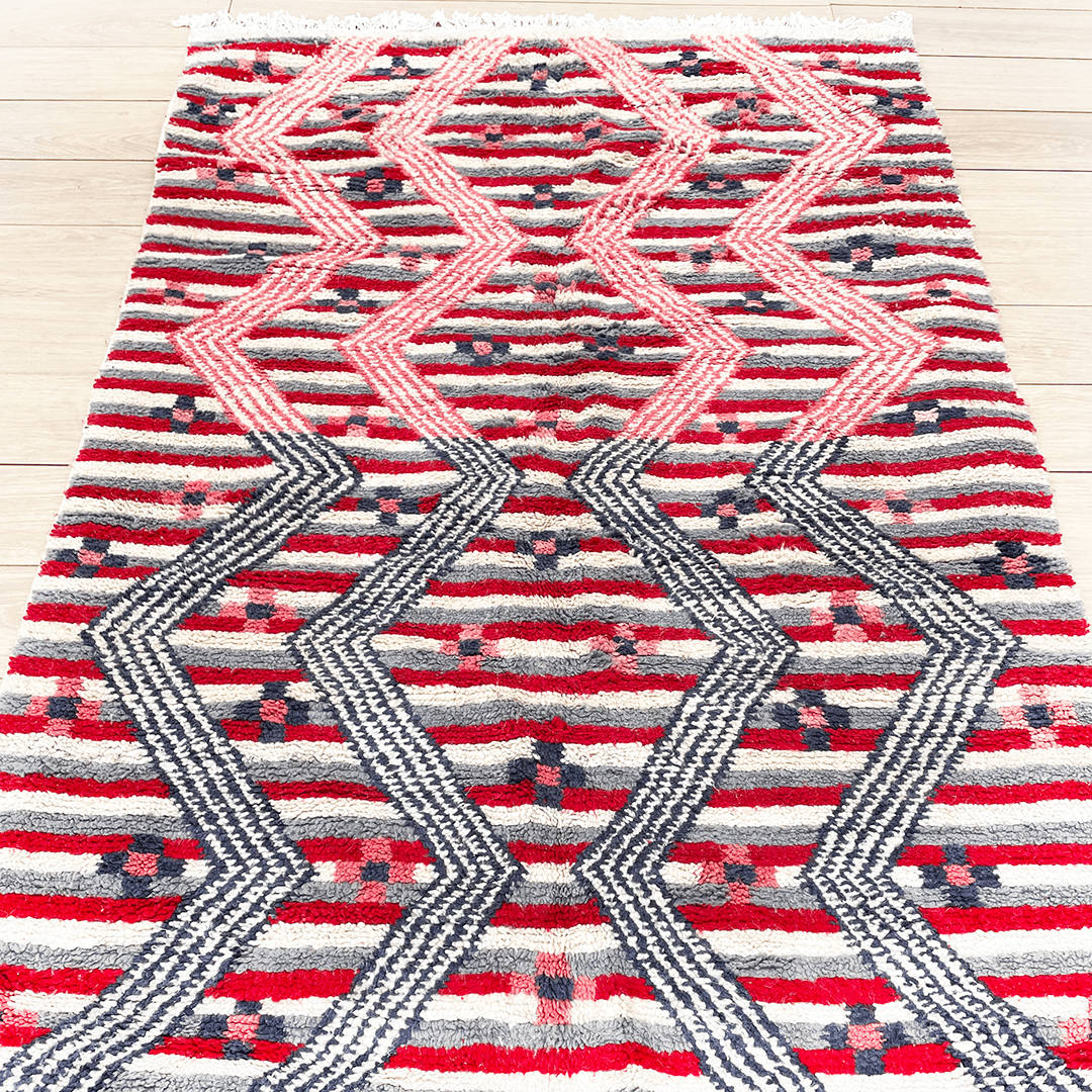 Each Azilal rug is unique, featuring bold, abstract patterns and intricate motifs that reflect the rich cultural heritage of the Berber tribes. The rugs are hand-knotted with a single-knot technique, making them both soft and lightweight, yet durable enough to withstand everyday use. These rugs are ideal for modern homes looking to incorporate a piece of Moroccan tradition with a contemporary touch.