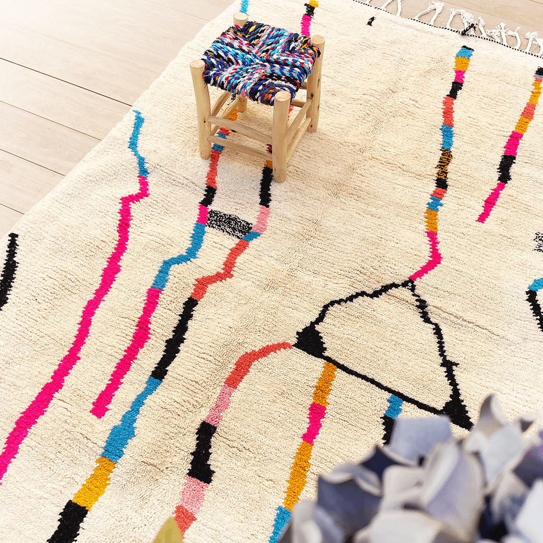 What makes our Azilal rugs truly special is the symbolic meaning behind their designs. Many feature motifs that represent femininity, fertility, and protection, connecting your space with a deeper sense of cultural history. The iconic, asymmetrical patterns bring a spontaneous, artistic flair to any room, making each rug a unique masterpiece.