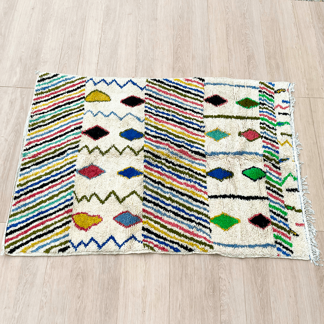 Each Azilal rug is unique, featuring bold, abstract patterns and intricate motifs that reflect the rich cultural heritage of the Berber tribes. The rugs are hand-knotted with a single-knot technique, making them both soft and lightweight, yet durable enough to withstand everyday use. These rugs are ideal for modern homes looking to incorporate a piece of Moroccan tradition with a contemporary touch.