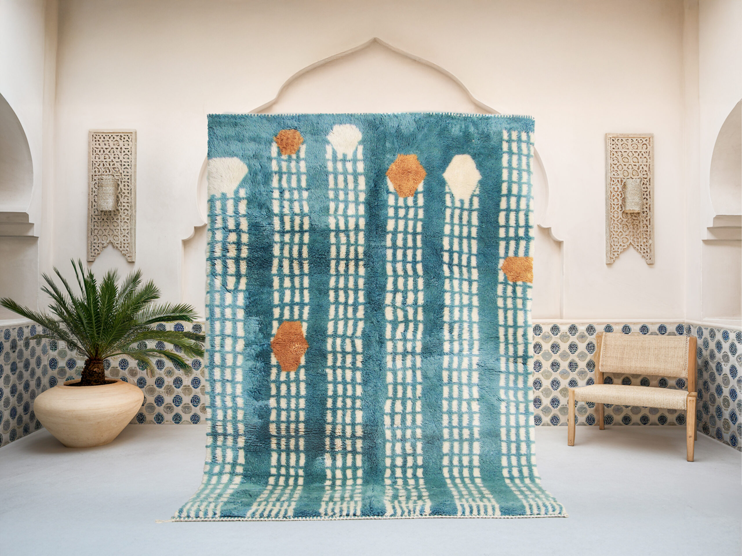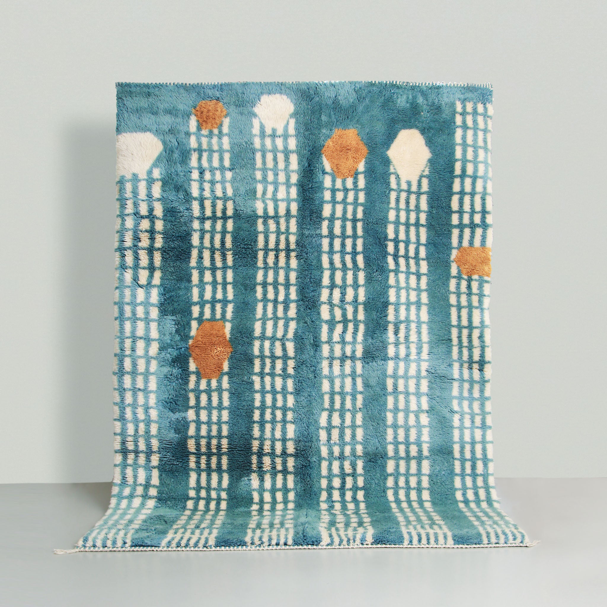 Handwoven with intricate double-knots, these rugs are not only thick and durable but also incredibly smooth underfoot, making them the perfect addition to any interior. Each rug is decorated with modern, abstract designs that capture the essence of Morocco’s rich cultural heritage, blending it seamlessly with contemporary aesthetics.