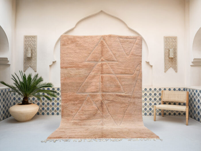 This exquisite Tamezzyant – Mrirt Rug is part of our luxurious handwoven collection, crafted with care by Berber artisans from the High Atlas Mountains in Morocco. Known for their exceptional quality, Mrirt rugs are made from the finest, undyed natural wool, offering an unparalleled softness and dense texture that sets them apart from other Moroccan rugs.