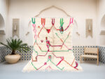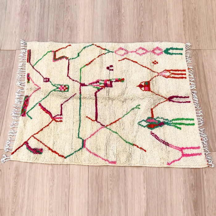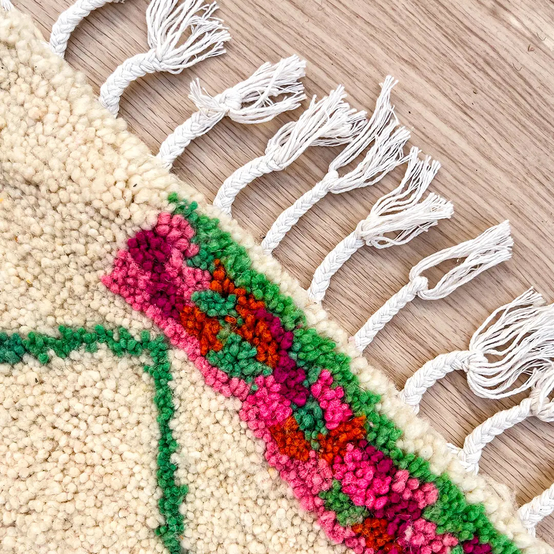 Moroccan Rug, Beni Ourain rug 100% thick and natural wool with fringed finishes on the edges. Exceptional and unique piece handmade by Berber women on wooden looms.