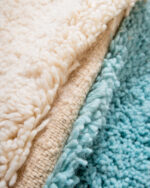 Their wool is made from very high quality, very soft and silky and very tightly knotted. Then the rug is washed for several days, in order to have an infinite softness to the touch. They differ from all other rugs by their fine and silky wool and by their intense thickness.