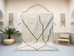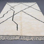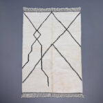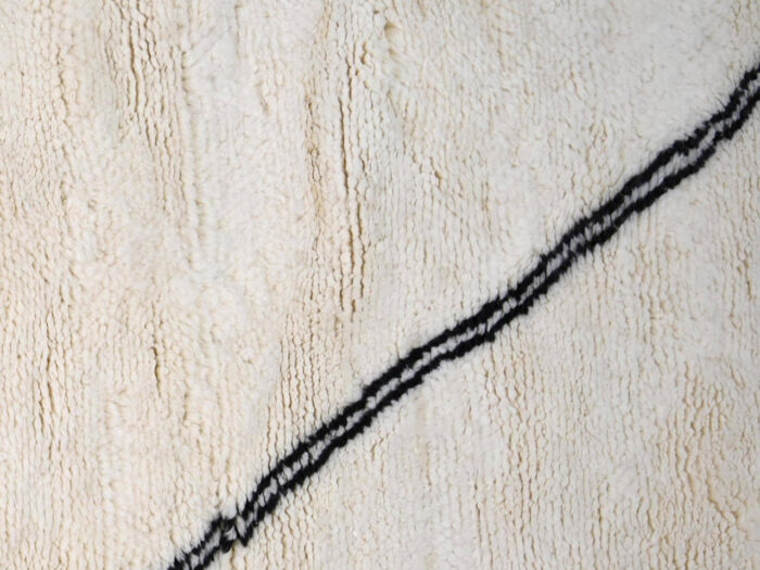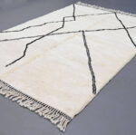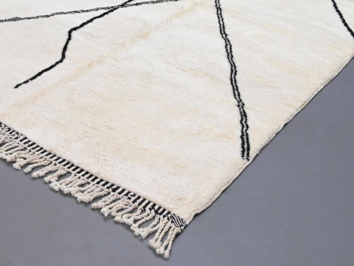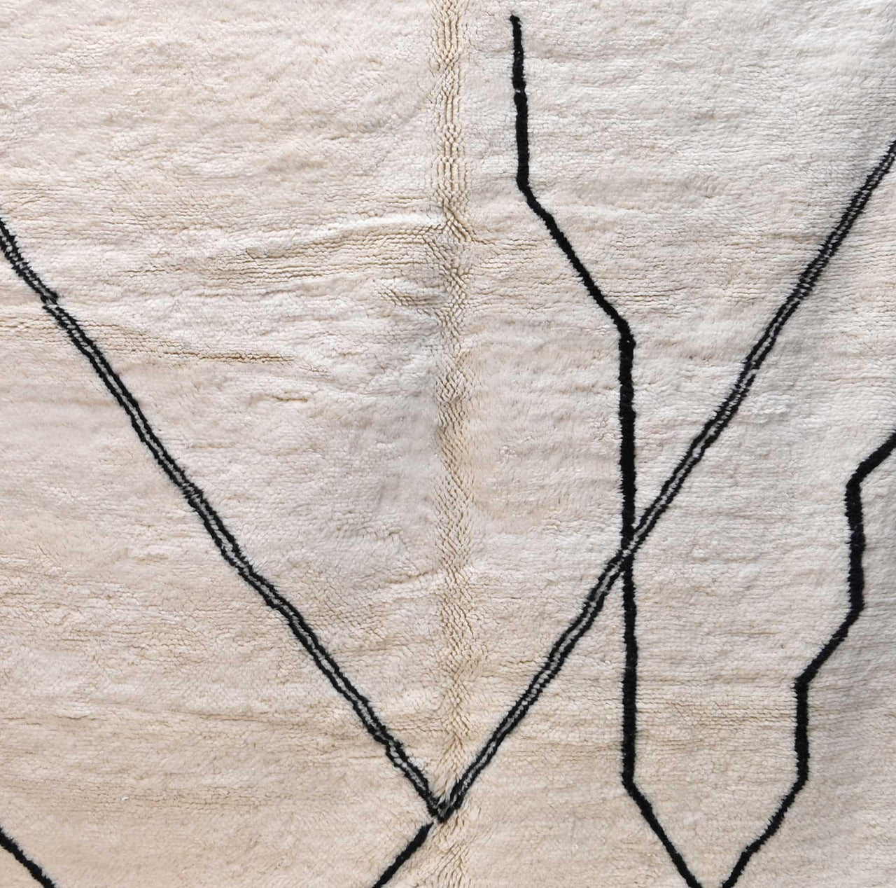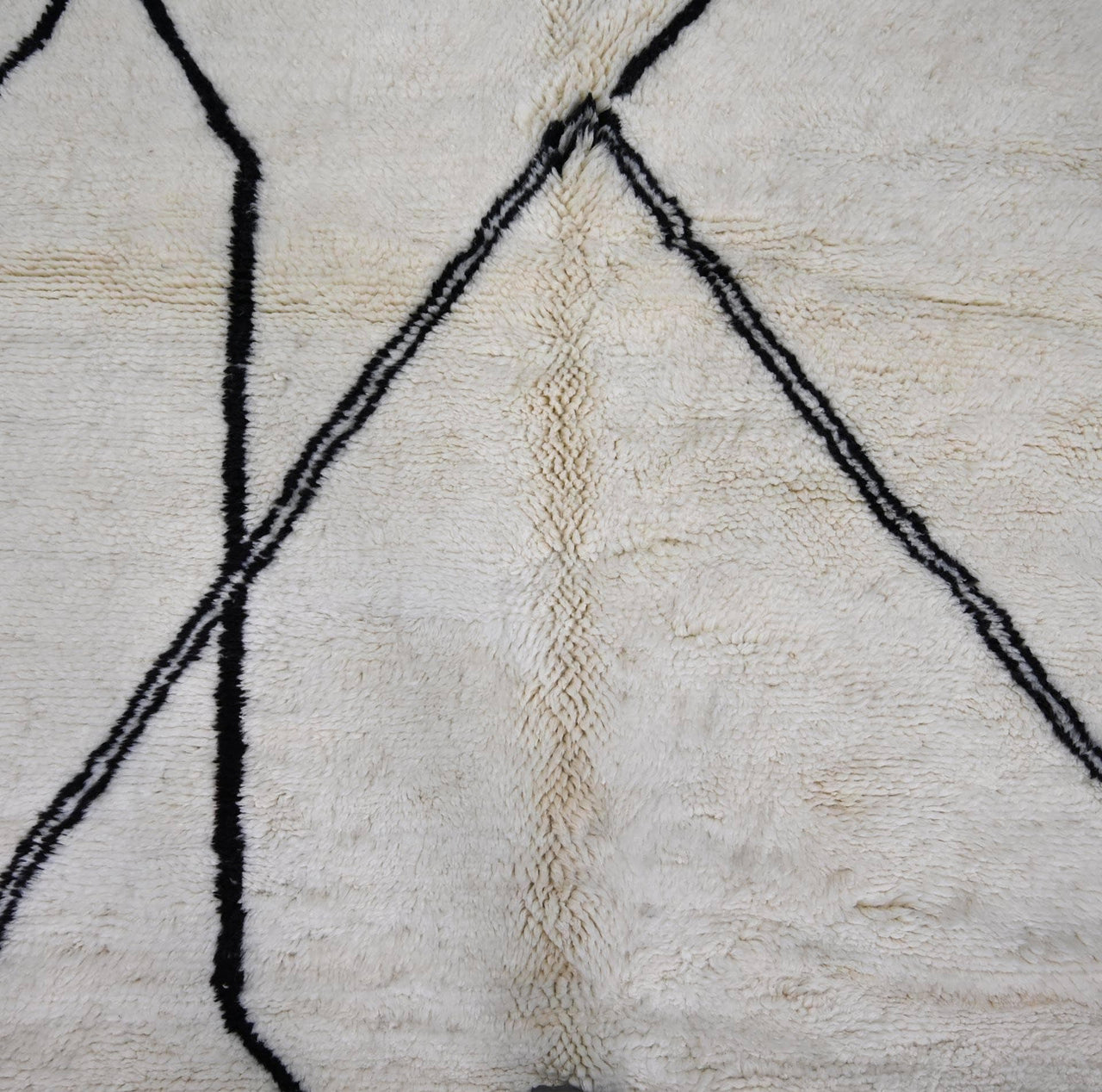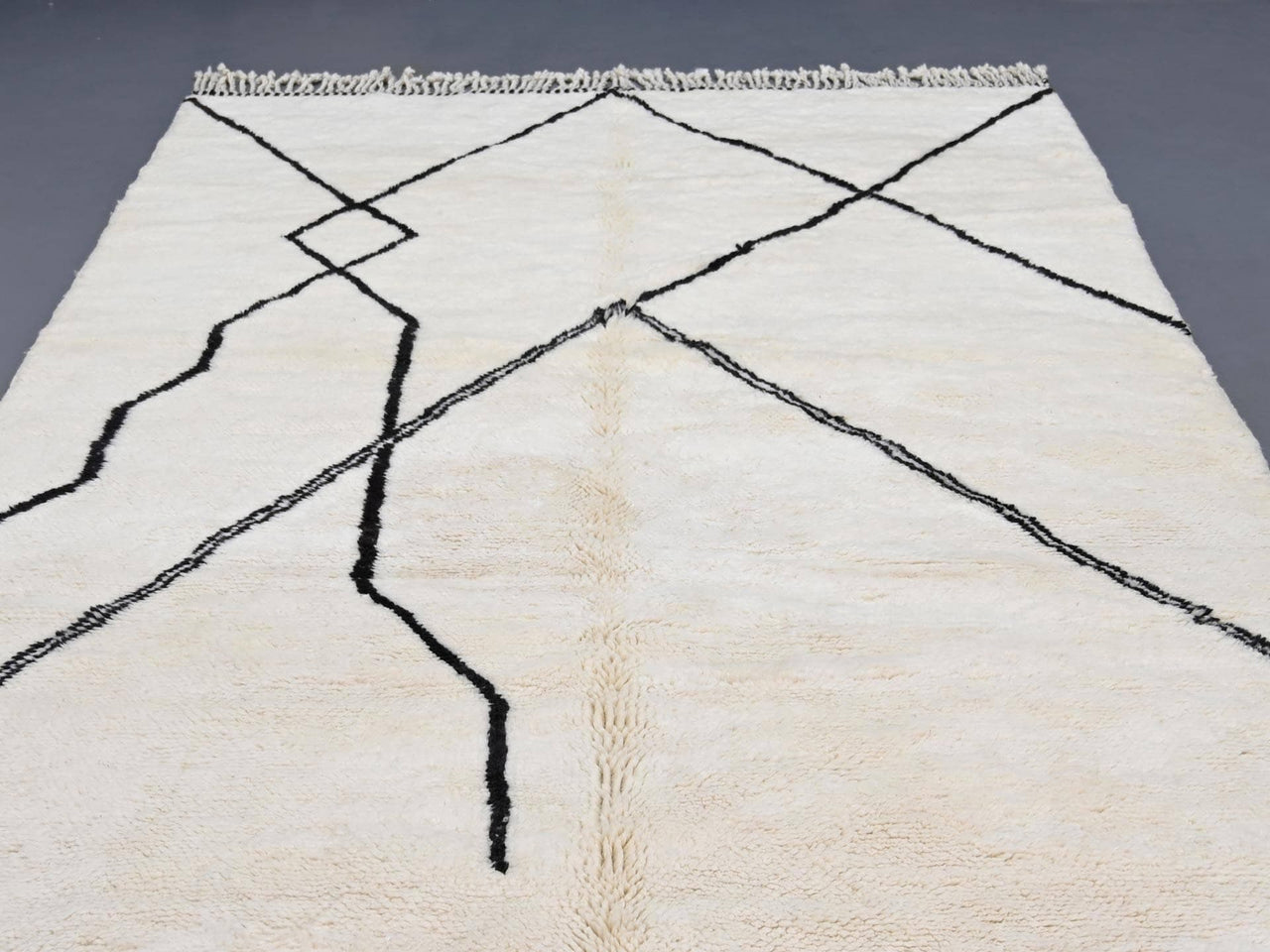 Moroccan Rug, Beni Ourain rug 100% thick and natural wool with fringed finishes on the edges. Exceptional and unique piece handmade by Berber women on wooden looms.