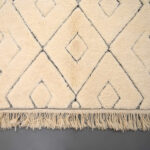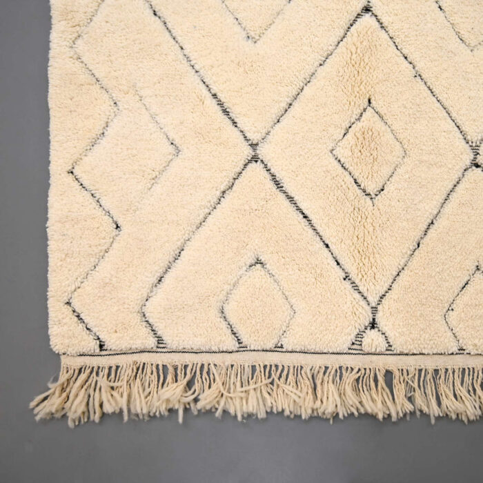 Beni Ourain rug 100% thick and natural wool with fringed finishes on the edges. Exceptional and unique piece handmade by Berber women on wooden looms.