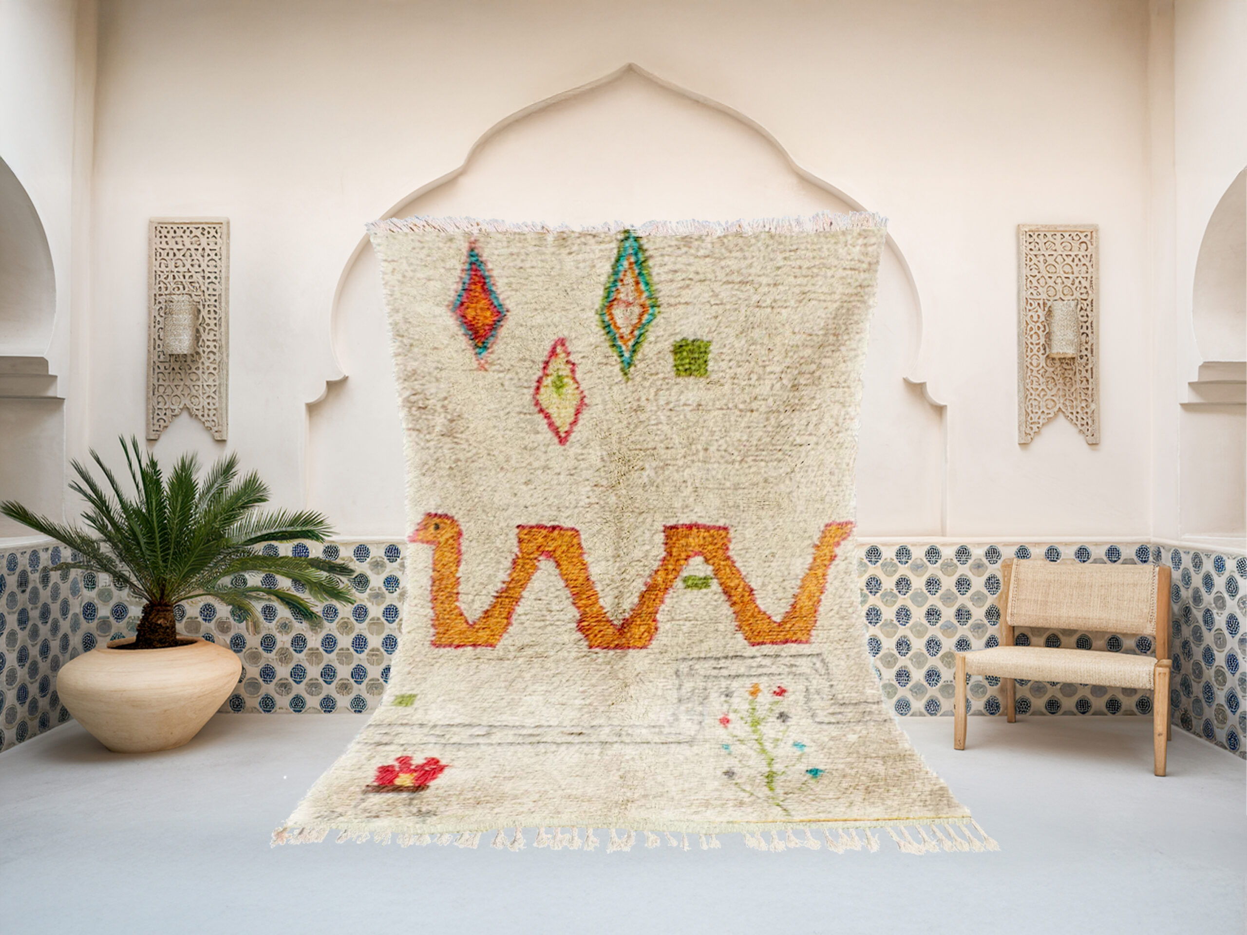 What makes our Azilal rugs truly special is the symbolic meaning behind their designs. Many feature motifs that represent femininity, fertility, and protection, connecting your space with a deeper sense of cultural history. The iconic, asymmetrical patterns bring a spontaneous, artistic flair to any room, making each rug a unique masterpiece.