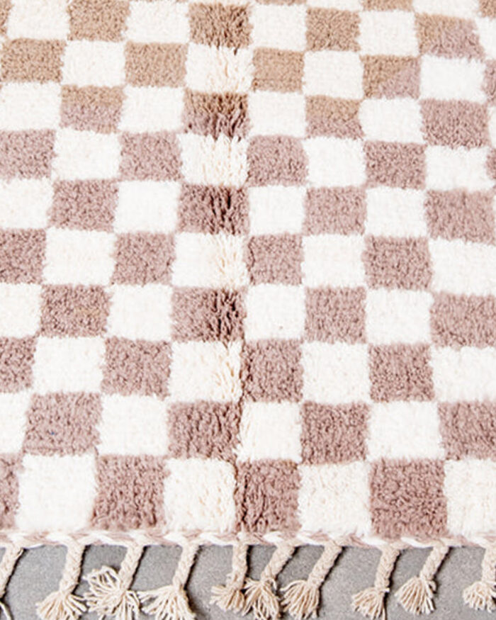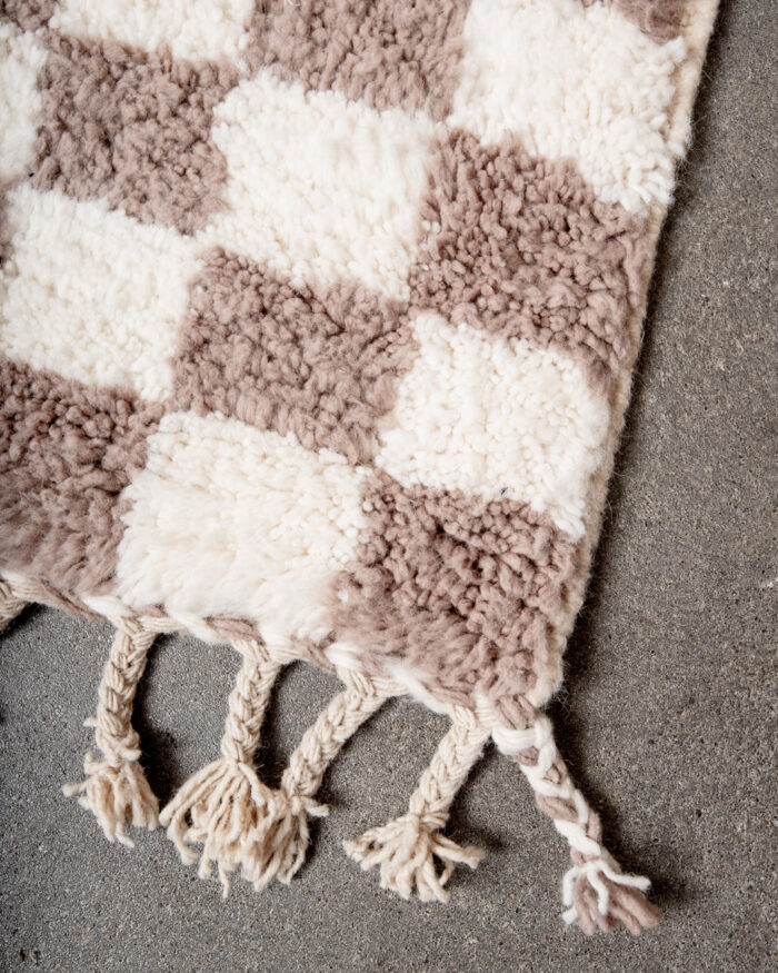 Moroccan Rug, Beni Ourain rug 100% thick and natural wool with fringed finishes on the edges. Exceptional and unique piece handmade by Berber women on wooden looms.