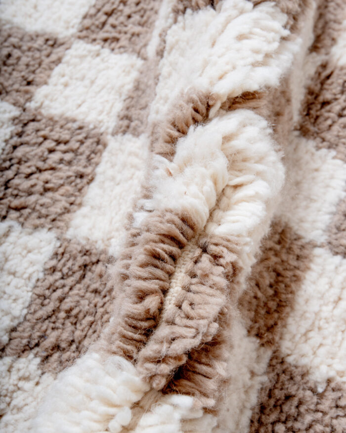 Their wool is made from very high quality, very soft and silky and very tightly knotted. Then the rug is washed for several days, in order to have an infinite softness to the touch. They differ from all other rugs by their fine and silky wool and by their intense thickness.