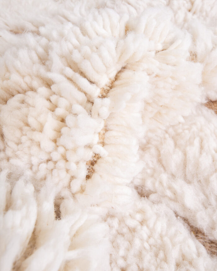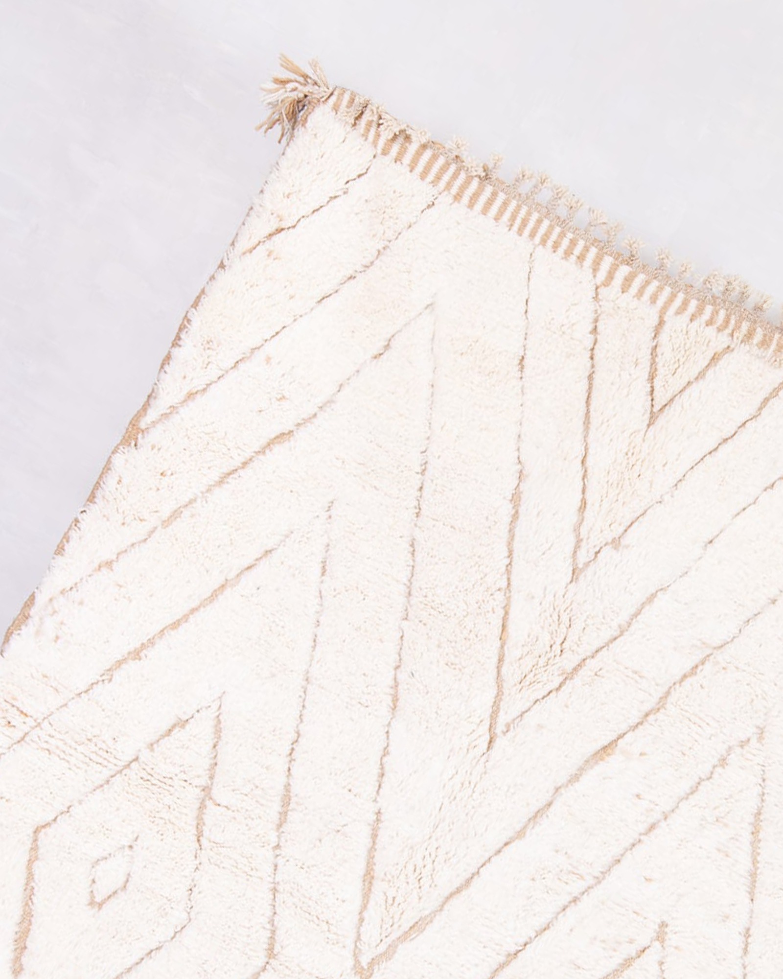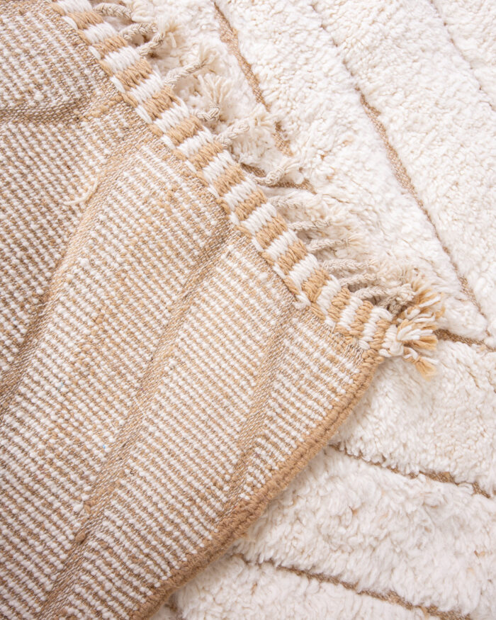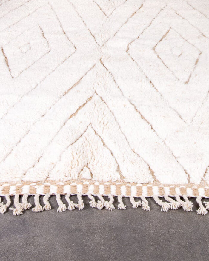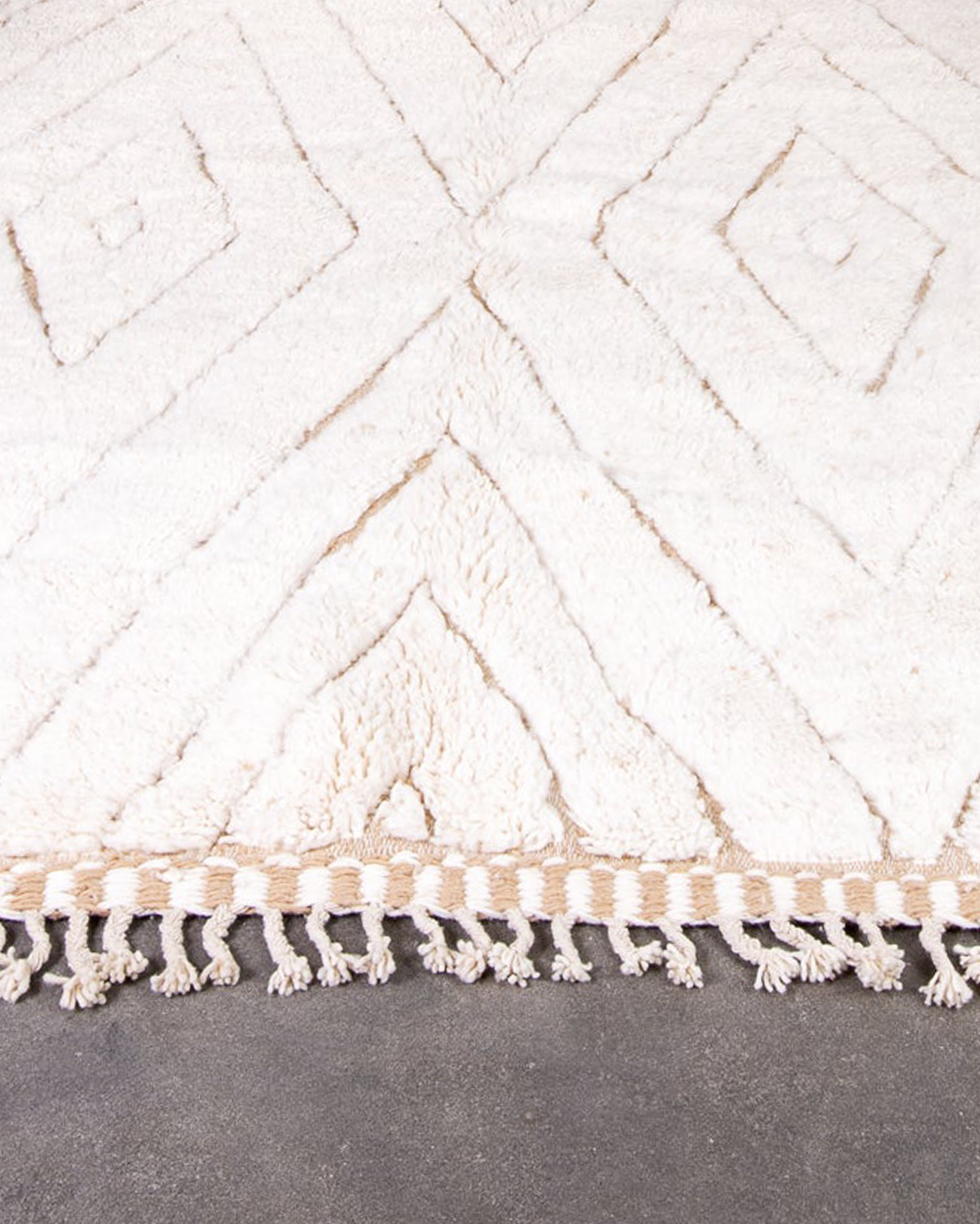 Moroccan Rug, Beni Ourain rug 100% thick and natural wool with fringed finishes on the edges. Exceptional and unique piece handmade by Berber women on wooden looms.