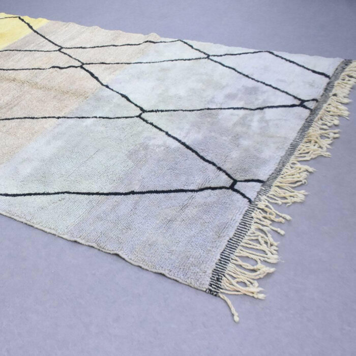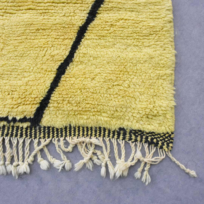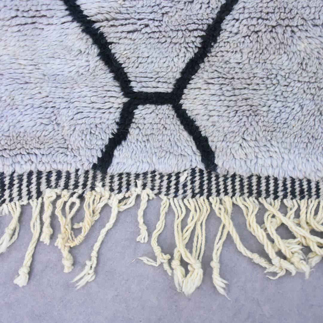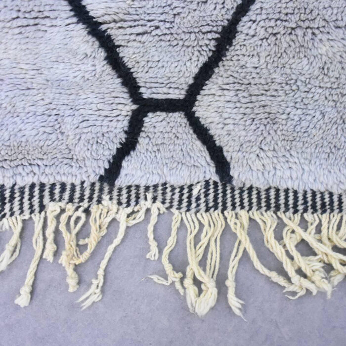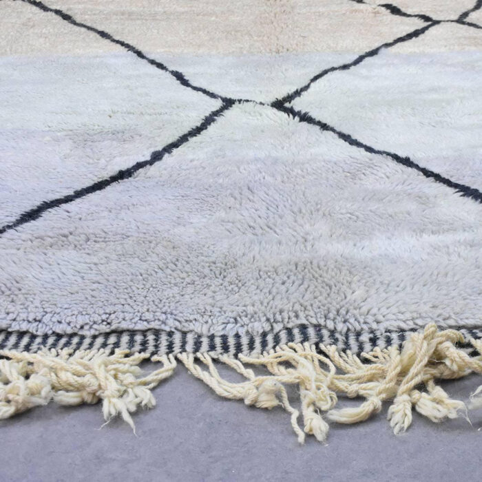 Beni Ourain rug 100% thick and natural wool with fringed finishes on the edges. Exceptional and unique piece handmade by Berber women on wooden looms.