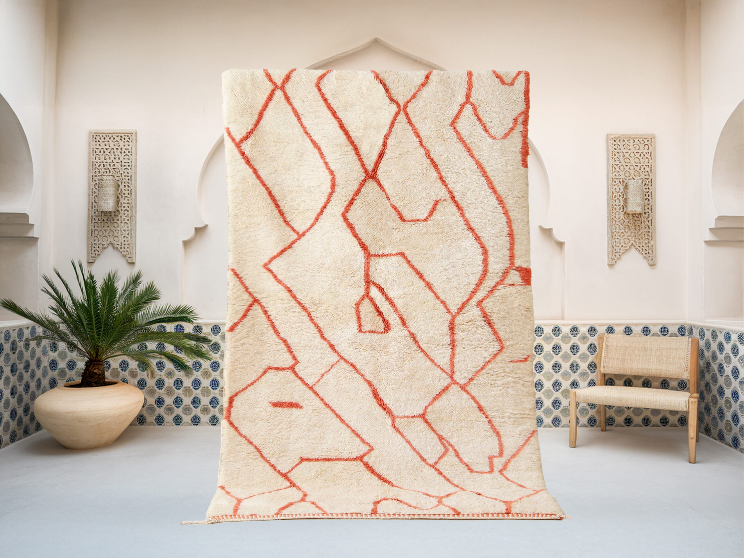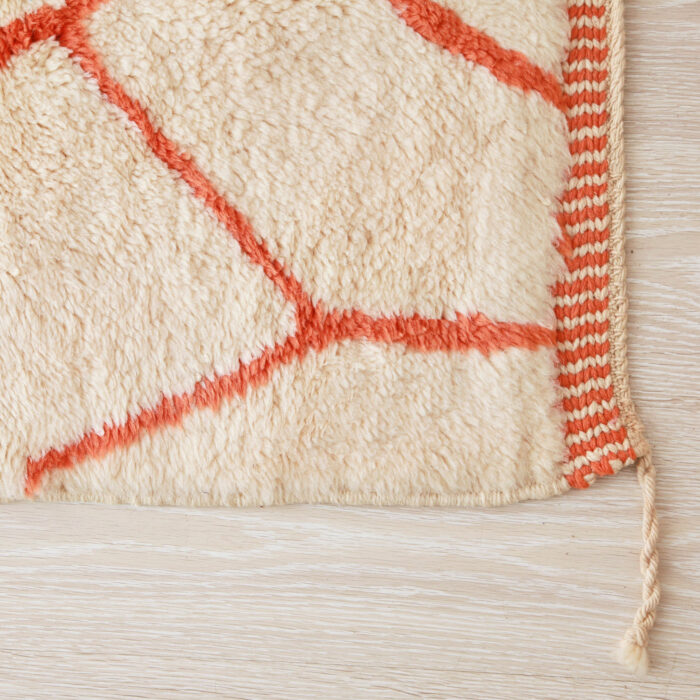 This exquisite Timlsa – Mrirt Rug is part of our luxurious handwoven collection, crafted with care by Berber artisans from the High Atlas Mountains in Morocco. Known for their exceptional quality, Mrirt rugs are made from the finest, undyed natural wool, offering an unparalleled softness and dense texture that sets them apart from other Moroccan rugs.
