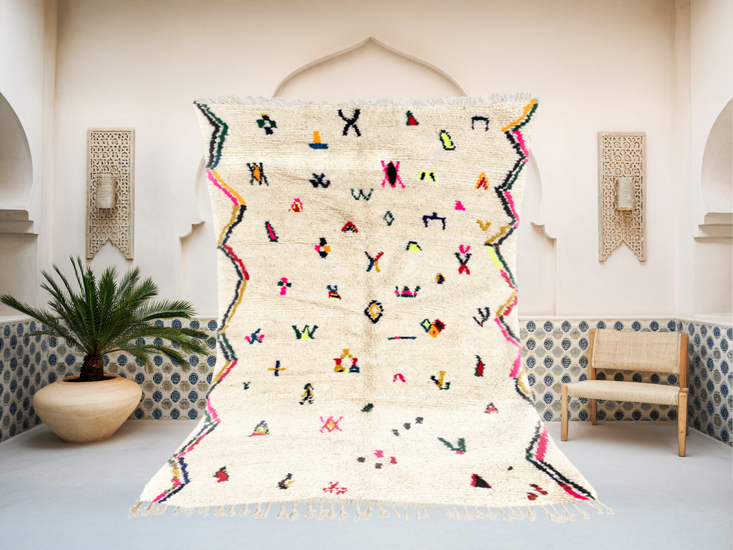 What makes our Azilal rugs truly special is the symbolic meaning behind their designs. Many feature motifs that represent femininity, fertility, and protection, connecting your space with a deeper sense of cultural history. The iconic, asymmetrical patterns bring a spontaneous, artistic flair to any room, making each rug a unique masterpiece.