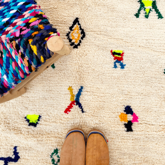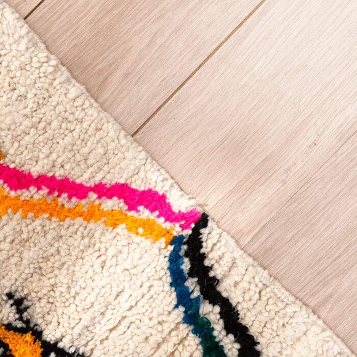 Our luxurious – Tina Rug is a standout piece from our handwoven collection, crafted with precision and care by talented Berber artisans from the High Atlas Mountains in Morocco. Renowned for their exceptional craftsmanship, Azilal rugs are made using a blend of natural wool and cotton, offering a distinctive texture and vibrant color combinations that elevate any interior design.