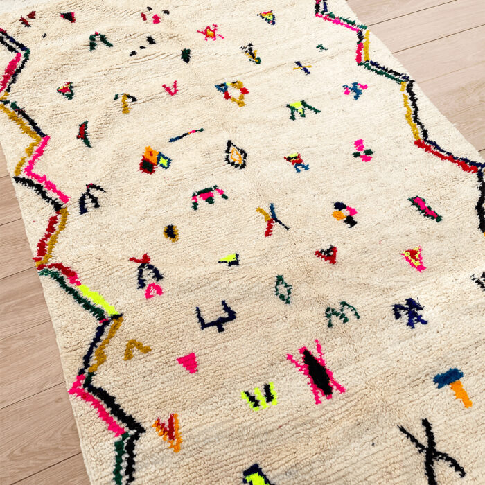 Each Azilal rug is unique, featuring bold, abstract patterns and intricate motifs that reflect the rich cultural heritage of the Berber tribes. The rugs are hand-knotted with a single-knot technique, making them both soft and lightweight, yet durable enough to withstand everyday use. These rugs are ideal for modern homes looking to incorporate a piece of Moroccan tradition with a contemporary touch.