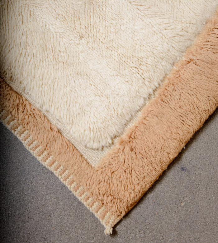Their wool is made from very high quality, very soft and silky and very tightly knotted. Then the rug is washed for several days, in order to have an infinite softness to the touch. They differ from all other rugs by their fine and silky wool and by their intense thickness.