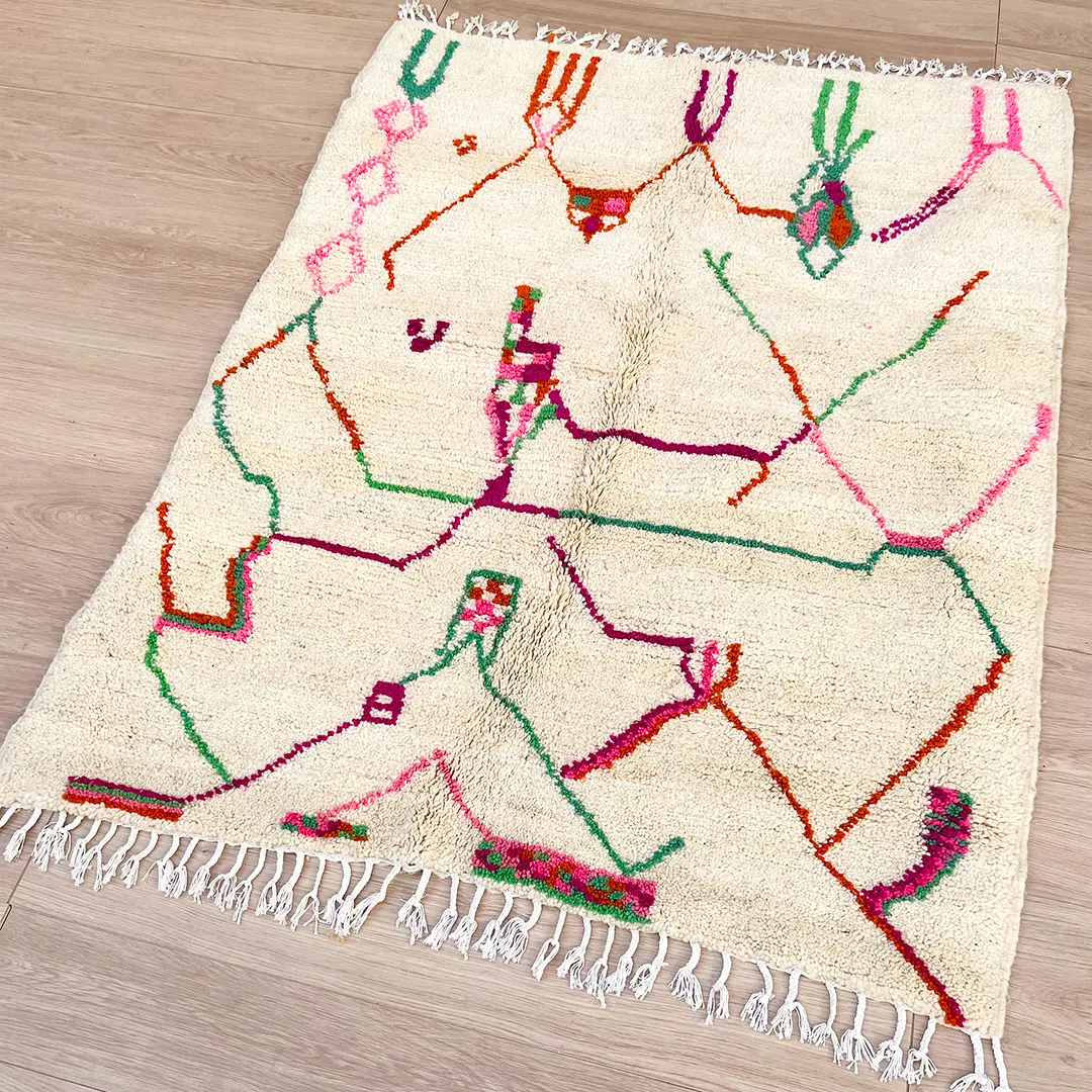 Each Azilal rug is unique, featuring bold, abstract patterns and intricate motifs that reflect the rich cultural heritage of the Berber tribes. The rugs are hand-knotted with a single-knot technique, making them both soft and lightweight, yet durable enough to withstand everyday use. These rugs are ideal for modern homes looking to incorporate a piece of Moroccan tradition with a contemporary touch.