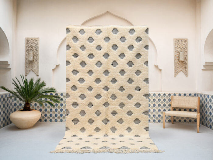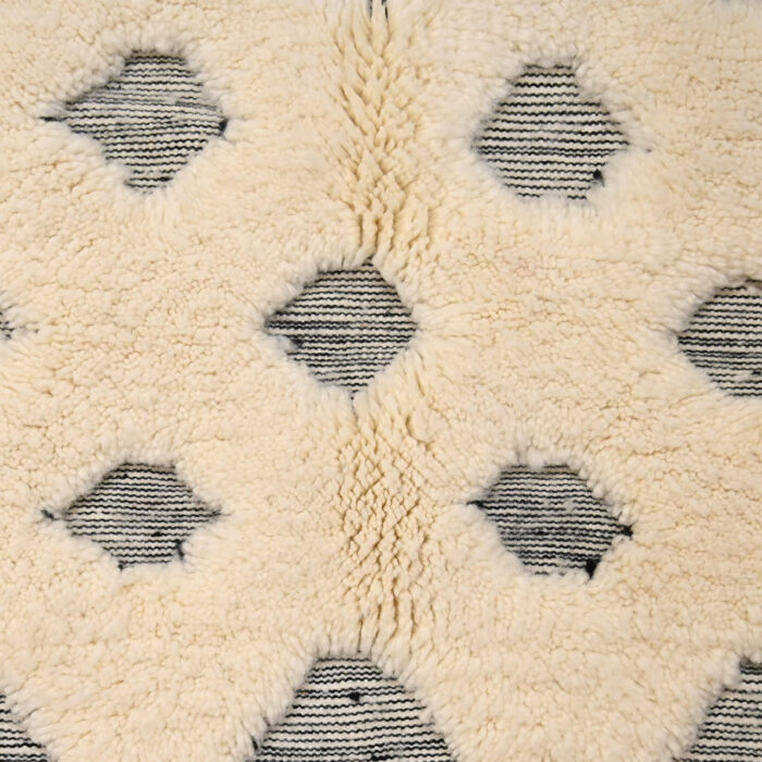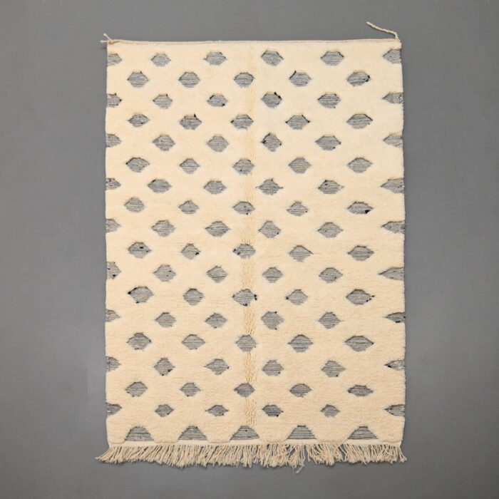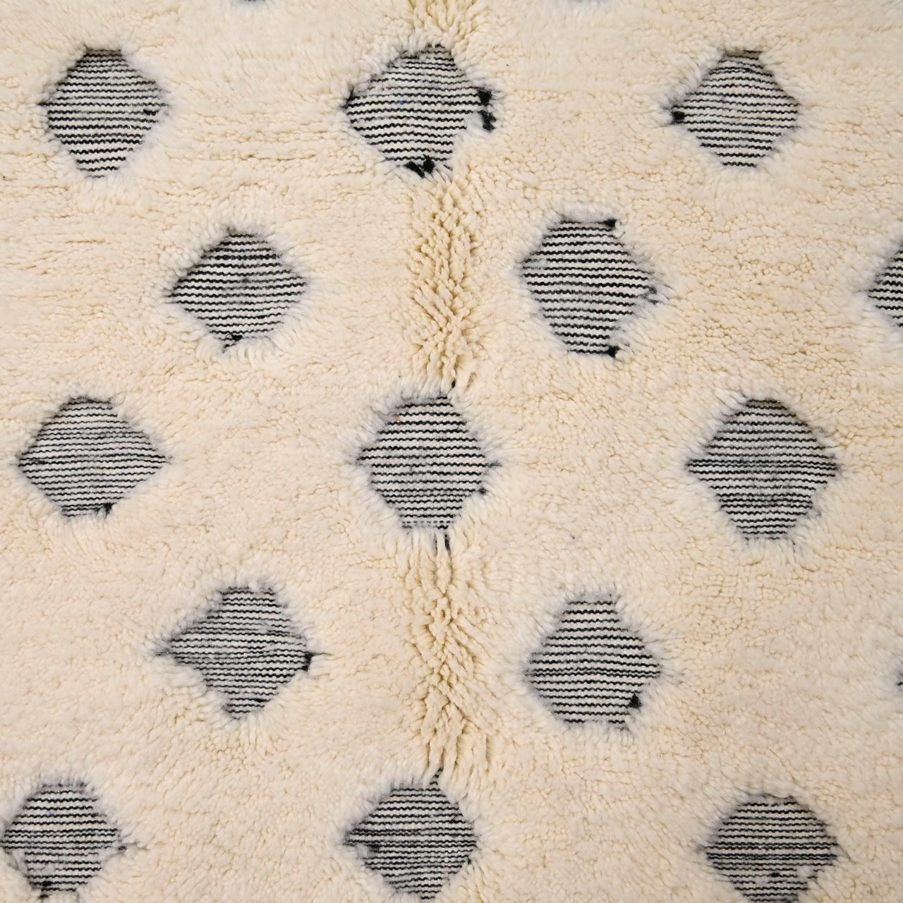 Moroccan Rug, Beni Ourain rug 100% thick and natural wool with fringed finishes on the edges. Exceptional and unique piece handmade by Berber women on wooden looms.