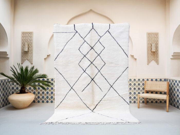 Their wool is made from very high quality, very soft and silky and very tightly knotted. Then the rug is washed for several days, in order to have an infinite softness to the touch. They differ from all other rugs by their fine and silky wool and by their intense thickness.