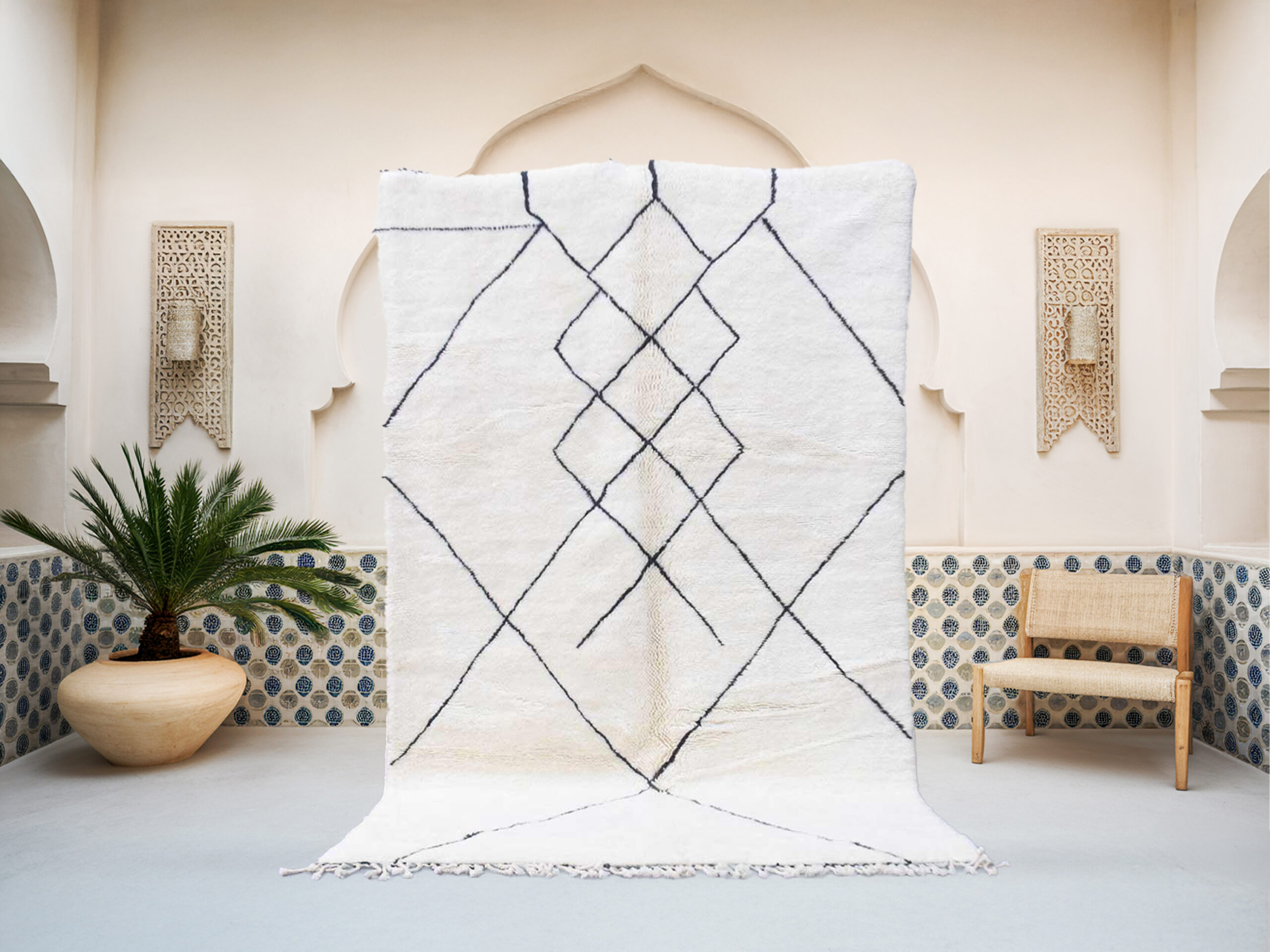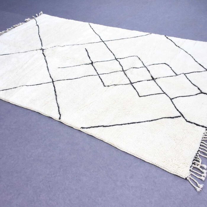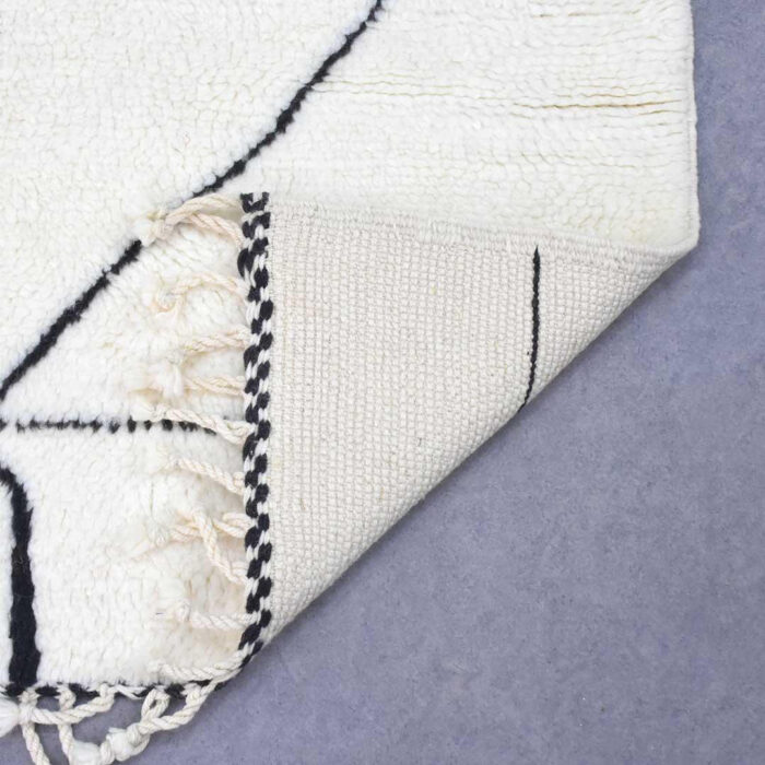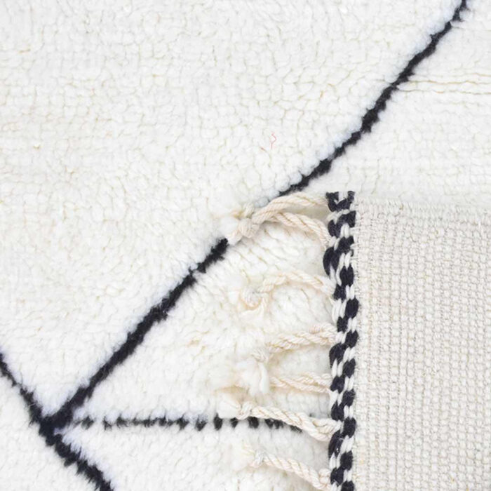 Moroccan Rug, Beni Ourain rug 100% thick and natural wool with fringed finishes on the edges. Exceptional and unique piece handmade by Berber women on wooden looms.